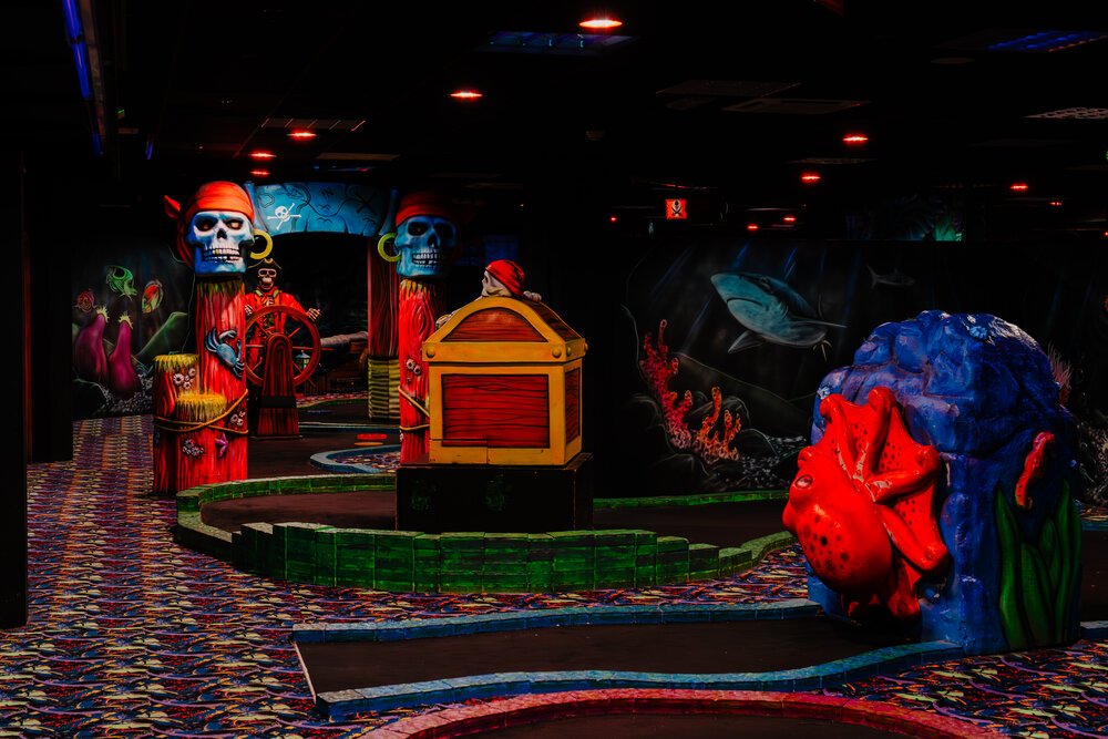 GlowGolf Scheveningen biedt 18 holes midgetgolf in een Glow-in-the-Dark piraten- en vissenwereld. Sla af bij haaien en piraten! Reserveer verplicht op www.glowgolf.nl, betaal met pin. Laatste afslag 60 minuten voor sluiting. Perfect voor een sportief en spannend uitje!